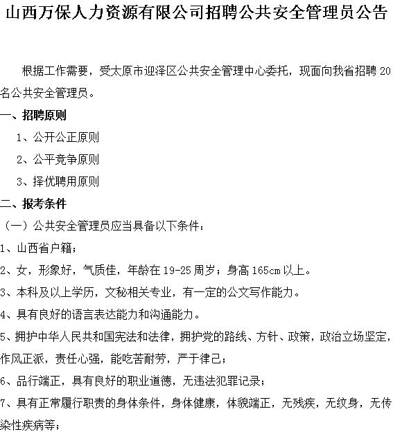 根據(jù)工作需要,經(jīng)古交市政府批準(zhǔn),現(xiàn)面向古交市公開(kāi)招聘輔助工作人員30名。招聘工作由山西萬(wàn)保人力...