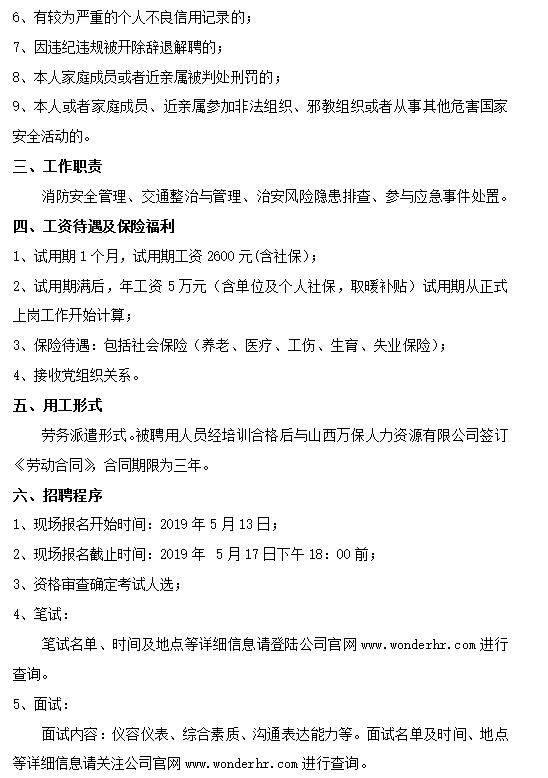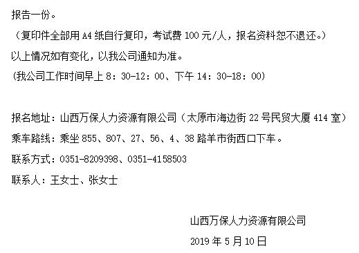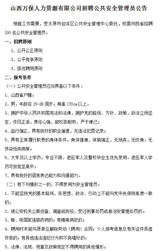 根據(jù)工作需要,經(jīng)古交市政府批準(zhǔn),現(xiàn)面向古交市公開(kāi)招聘輔助工作人員30名。招聘工作由山西萬(wàn)保人力...