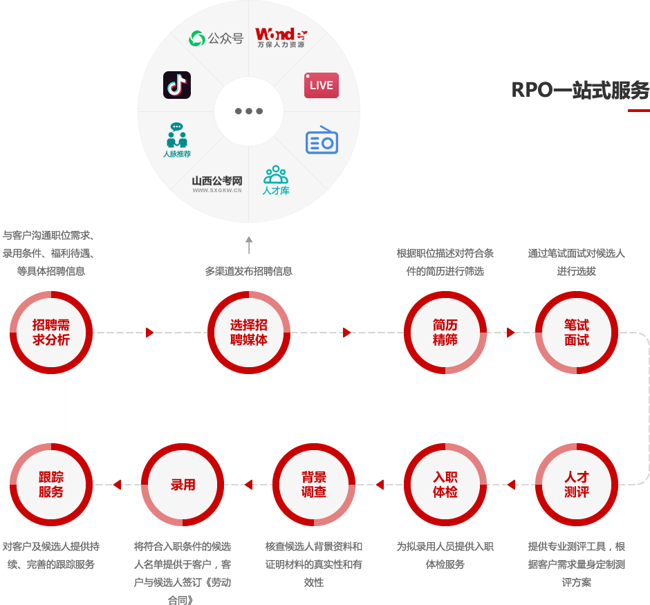 招聘流程外包服務(wù)(RPO)是一種以客戶為導(dǎo)向,以項(xiàng)目為建制,解決招聘任務(wù)的服務(wù)方案。RPO可以滿足企業(yè)節(jié)約招聘成本、優(yōu)化招聘流程、緩解招聘壓力,保證高質(zhì)量的招聘結(jié)果。